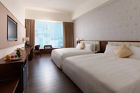 房内有二张大床提供您舒适的睡眠空间,专利高弹力弹簧床垫,铺上雪白色的床巾与可吸附异味且防螨的羽绒枕、羽绒被,让您一夜好眠。一字型的工作台设计,同时兼具收纳、行李、备品摆放等功能。在露台区备有长条型座椅伴以明式木制小茶几可以谈心品茗。墙面挂上42吋Panasonic液晶电视,配有100多个频道可供选择。