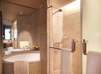 位于酒店的7~12楼,占地11坪(37平方公尺)。大片落地窗的景致,引进白天耀眼阳光、夜晚能鸟瞰台北西区的迷人夜景。成熟的色调与氛围,独立的淋浴间与圆形浴缸,能完全放松旅客情绪。