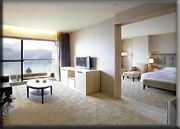 外观特别融合日月潭原住民的图腾,整体饭店是水岸式的波浪式线条,颇能符合现代主义和当下流行的俭约风。所有房间都装有32吋液晶电视,在客房和户外景观的融合上,则采类似国外知名湖滨饭店的规画方式,每一个房间隔音颇佳,面湖的房间都有观景阳台,让房客能近距离直接欣赏日月潭最美丽风光,你可以直接面对日月潭的慈恩塔、玄状寺、玄光寺、光华岛...等等,让日月潭的湖光山色近收眼底,游客可以享受悠游闲暇的生活,远离世俗的喧嚣烦闹,再配合饭店人员高雅优质的服务,让您爱上日月潭,尽情享受宁静、美景与人生。