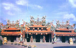 构造:传统木结构之闽南式剪黏建筑,砖造薄瓦瓦顶。