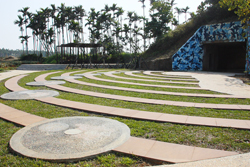 此地道路虽然小条,不过很适合骑自行车来游玩,沿着7座不同特色风格的碉堡,体验碉堡以前的历史。首先是第一座碉堡,大剌剌的「七星阵地公园」标示,堡身有着黑白相间的迷彩造型,内部全景皆钟乳石状的尖尖物,据说是为了减少炮震对碉堡内部的影响而设计此风貌,其它几座也有类似的样貌,但是堡外的景观设计都大不相同,也是来到这边赏游的一大卖点,本人最喜欢「天旋」这座碉堡,以木阶梯方式铺成至碉堡上方,上方有类似景观台般的平台,由上处观赏可见一大片茶园及菠萝田,顿时美不胜收,适合晚上观星的地方。