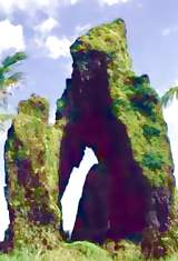 玉 女 岩 又 称 阴 阳 石 , 为 一 座 三 角 锥 形 岩 石 , 中 间 竖 着 一 根 圆 柱 形 岩 石 , 形 态 幽 雅 , 犹 如 玉 女 。
