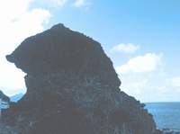 钢 盔 岩 形 状 如 阿 兵 哥 的 钢 盔 , 在 蔚 蓝 的 天 空 下 , 饶 富 野 趣 。 象 鼻 岩 则 为 一 个 完 整 的 象 头 , 唯 其 象 鼻 部 份 , 岩 层 纹 路 与 大 象 皮 肤 一 模 一 样 , 妙 趣 横 生 。