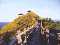 小长城步道位于绿岛东边海岸,为一长约四百公尺的石阶步道.在绿油油的山坡上,通往岬角顶上的观景亭,从道路远观步道,看似缩小的万里长城,因此当地居民就将这步道取名为「小长城步道」。步道尽头的观景亭,三面皆是陡崖,高出海平面约80m。这里是最能看出绿岛自然丰富迷人的海岸。不论是海岬、湾澳、海阶崖、珊瑚裙礁、海蚀柱、白色砂滩、弦月小海岸平原等,交互出现,配上湛蓝清澈的海水,因此这儿的风景可说是全绿岛之最了。