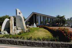 进入小野柳风景区,首先映入眼帘的,是一栋斜式屋顶造型的游客服务中心,服务中心内的地质展示馆,以生动的地质模型、岩石标本等,介绍小野柳特殊的地质景观及海岸山脉形成与演进的过程。参观小野柳前,游客可以先行到地质景观展示室看详细说明,再走到海边岩石上仔细辨识豆腐岩、蜂窝岩、蕈状岩等各种奇形怪状的岩石。天晴时,自小野柳东望,可以清楚地看见32公里外的绿岛,以及由富岗渔港出航前往绿岛、兰屿的交通船。
