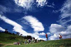 从龙田村沿着指标一路往高台走,只见地势逐渐升高,经过高台茶叶展示中心后不远,好大一片绿草如茵的宽广草坡随即映入眼廉,这就是花东纵谷国家风景区规划的高台飞行伞训练示范场。登上草坡最高处的高眺亭,整个高台地区与卑南溪谷底的景色,尽在眼前,一览无遗。沿着道路走到南方尽头的福鹿山休闲农庄,马路对面就是飞行伞起跳点,也是飞行伞好手们大展身手的地方。乘着南风在空中遨翔,饱览大地美景,有如飞鸟般御风而行,难怪近年来吸引许多游客来此体验飞行伞活动的乐趣。