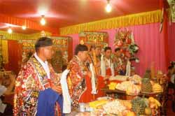 中元普渡,除了佛、道所说的目连救母,在七月十五普渡亡魂外,后来民间又绘声绘影的增添了七月一日鬼门关开门的传说。据说每年的农历七月初一,地府会打开鬼门关,让无人奉祀的孤魂野鬼到阳间来享受人们的供祭,一个月内,左邻右舍轮流祭拜,有人拜初一,有人拜初二,直到七月的最后一天,才会关上鬼门关,这批孤魂野鬼才又回到阴间,所以农历七月又叫做「鬼月」。
