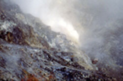 搭乘公车于「小观音山」站下车之后,往回走大约五分钟,可看到一条通往小油坑的石阶步道。在这条步道上,我们可以看到三种面貌不同却界线清楚的植物带,分别是箭竹林、芒草原和苔藓区,而它们的分布正和小油坑特殊的火山地形密切相关。箭竹以其地下茎的紧密盘生,让其他植物无法侵入其生长领域。再往前走,就进入了芒草原的地盘。这里的芒草以台湾芒为主,耐力极强,自每年九月底开始,台湾芒便绽放出白色微带红泽的花,届时小油坑旁一片有如海浪般的芒花,十分壮观。在喷气孔的周围,则是属于苔藓的天下。因为喷气孔所喷出的高温蒸气及具腐蚀性的硫气,使得植物几乎无法生存,只有苔藓类可以在如此恶劣的环境中,为大地带来一点绿意。 资料来源: 资料日期:2003-05-01