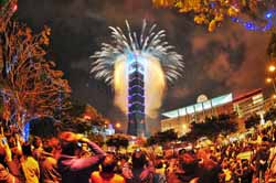 Taipei to the world )的希望工程。 TAIPEI 101在93年12月31日举行大楼开幕典礼,除了宣示TAIPEI 101进入全新的营运阶段,当晚的跨年点灯配合炫丽耀眼的烟火秀,更是成功的向世人宣告TAIPEI 101的时代来临;94年2月,台湾证券交易所正式签约宣布进驻,4月18日,德国拜耳公司更成为第一家进驻的跨国企业,紧接着包括瑞泰人寿、荷兰银行、Google等国内外一流企业进驻,101商圈已经成为台湾经济发展的重要指标。