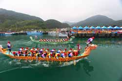 (1)龙舟竞渡:是端午节主要民俗活动。台湾地区的龙船赛目前以宜兰冬山河、台南运河、鹿港福鹿溪、台北淡水河规模最大;而礁溪二龙村龙舟赛已传承一百七十余年,最具历史意义,其特色是不设裁判、以立式划船、不击鼓且由洲尾、淇武兰两村居民尘战终日,宜兰俗语有:「二龙村划龙船--看人干谯」之说,意谓两村竞争激烈,常有纷争之意。