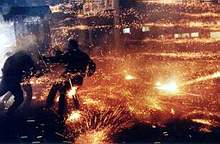 这些蜂炮中以酬神的炮城最为壮观, 炮城的规模不一, 但总有数万枚冲天炮制成,每当神轿来到炮 城前,主人拉开红布点燃蜂炮顷刻万发齐放,五彩 火花绚丽夺目,是蜂炮夜中最刺激、迷人的时刻。