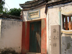 「安平乡土馆(海山馆)」的对面是一家天主教会,与中式风格的海山馆相望,更是有一种新旧中西文化冲突的感受。海山馆大门口上有一个可爱的剑狮的图形,馆内的中国风建筑与室内格式,极具安平风俗特色,喜欢台南古迹之旅的民众可以到海山馆走走
