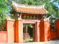 台南孔庙是全国最早的文庙,建于明永历19年(1665),是目前台湾历史最悠久,建筑群最壮观的孔庙,庄严宏伟,格局完整,列属国家一级古迹。目前还大致保持「左学右庙」的传统规模,左学是以明伦堂为主的建筑群,右庙则以大成殿为中心。不过,现在许多围墙都以倾颓,空间结构和原本稍有不同。