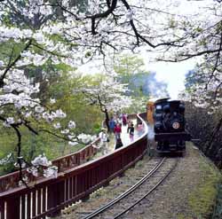 阿里山森林游乐区,位于阿里山山铁道终点。过去到现在闻名遐迩,尤以阿里山祝山观日为最,阿里山向以「铁路、森林、云海、日出及晚霞」五奇著称。此外,园区内的景点致可分为三个区域,第一区为阿里山森林游乐区本身,第二区为祝山观日、对高岳观日步道,第三区为眠月线、大塔山步道和阿吉纵走、阿丰纵走等。阿里山的气候四季相差不大,平均气温摄氏10度左右,在冬季最寒冷时可达零下3度,几乎没有蚊虫,从古至今都是首屈一指台湾休养避暑最佳处所。现在当地酒店民宿住宿方便,让前来观赏日出盛况的游客更加便捷。阿里山也是赏鸟的最佳地点,栗背林鸲、酒红朱雀、鳞胸鹪鹩等,并有长约四公里的赏鸟步道,沿途林木繁茂、景色秀丽,步道平缓,行经沼平公园、姐妹潭、受镇宫、旧阿里山神木遗址、慈云寺等景点。