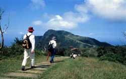 天气晴朗时,草原上可西眺三貂岭,东望太平洋;变天时,腾云驾雾,甚至可做捉迷藏的游戏;秋冬之际,强劲的季风常推来一朵一朵的云团,漫山的五节芒在云团中若隐若现。草坡上,大伙儿围坐说笑,或躺个舒适的大字形,仰望蔚蓝的天空,让山风和着海风吹拂着。站在最高点,兰阳平原及龟山岛皆在你的脚底下,山海交错,人烟渺远,真正是世外的天堂仙境。