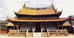 清雍正4年(公元1726年)创建,现貌之格局系道光10年(1830年)大修之结果,列属台湾一级古迹,其中以主殿「大成殿」之建筑雕刻最为精美。殿内奉有先贤圣人牌位,正中祀有孔子神龛一座,其上悬挂「道贯古今」、「与天地参」二匾,前为蒋经国先生所题颁;后为清乾隆皇帝所御赐。为台湾中部文教发展之重要象征。原规模宏整,除孔庙外,尚有白沙书院、明伦堂等设施,现存大成殿、东庑、西庑、后殿祟圣祠、戟门及棂星门等。至棂星门外之礼门、义路、泮池、宫墙等皆毁于日据时期,甚为可惜,现今之彰化孔庙,仅保留原规模约三分之二,曾于67年据原状重修。