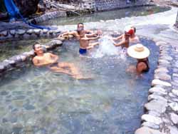 乌来温泉位于游乐区的前方,温泉旅社林立在路旁,温泉的水温在80至86度间,泉水无色、无臭、透明,属于弱碱性碳酸泉,可饮可浴。野外温泉又称热力温泉,位在南势溪和桶后溪交流处,有两处,均在南势溪畔,相距不过百来公尺。