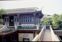 林本源园邸计有五部分:弼益馆、旧大厝、新大厝、白花厅及花园。今新大 厝、白花厅已不存,仅存且最重要的是旧大厝与花园。