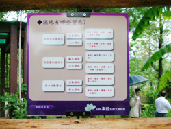园区十分宽敞舒适,林木蓊郁,回廊蜿蜒,3000坪的大草原和人工瀑布是景观最大特色。由于土地不适合农业生产之用,故以发展生态教学为主轴,设有「生态馆」、「蝴蝶馆」、「香草温室」、「萤火虫复育室」等。并拥有生态池、小溪等湿地生态区,搜集数百种水生、陆生原生种植物,生态系统完整,最具多样性生物展示,是都会地区当中探索生态的理想园区。