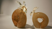 玻璃雕塑品 :同心羊、水果系列、玻璃花瓶…等
