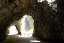 在此断崖的峡谷上方,天空尽被山势所阻,非引颈仰望,不见青天,这就是所谓的「虎口线天」之景。