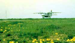 马祖列岛唯一的机场,原属军方小型侦察机使用。八十三年二月起通航,飞行十九人座的小飞机。对饱受长程航海之苦的马祖人而言,机场开放是莫大的福音。