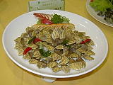 笔架:俗名佛手的它,形状似手掌且长短有别,很多人初次看到它时,会觉得有点恐怖因而不敢品尝,食用时需将「手掌」部分往左右拨开,然后品尝下端淡粉红色的肉质,至于尝起来的味道有点难形容,反正…就是属于海产类食物的味道!
