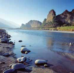 荖浓溪到了梅山以后 ,溪谷由纵谷转为横谷 ,延着溪谷的南横公路也开始显著爬升,沿路山壁的颜色也由灰黑色转为斑驳黄褐色,因为这边是变质程度较高的中央山脉岩层。