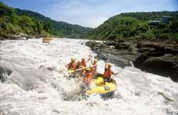 每年夏季热闹登场的荖浓溪泛舟,已经成为南台湾最受欢迎的水上活动了。尤其是在荖浓溪泛舟路线重新规划之后,开发更为刺激的荖浓溪上段的泛舟,经观光局评定为四级的泛舟路线(数字愈大代表难度愈高,花莲的秀姑峦溪为二级),沿途的急流险滩不断,泛舟过程十分惊险刺激,还不时有翻舟的情形发生,一定要特别注意安全措施。